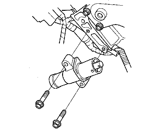 10. Thread the battery clamp bolt in as shown to hold the timing belt adjuster. Tighten it by hand; do not use a wrench.