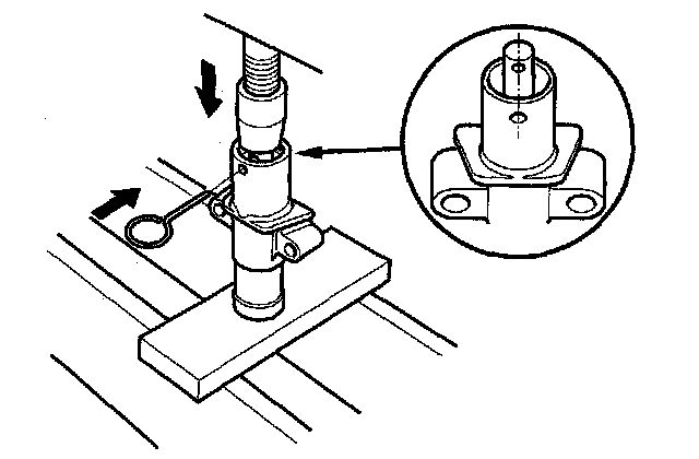 8. Use a hydraulic press to slowly compress the auto-tensioner. Insert a 2.0 mm (0.08 in.) pin through the housing and the rod.