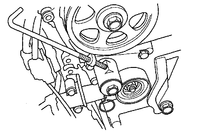 11. Loosely install the idler pulley with a new idler pulley bolt so the pulley can move but does not come off.