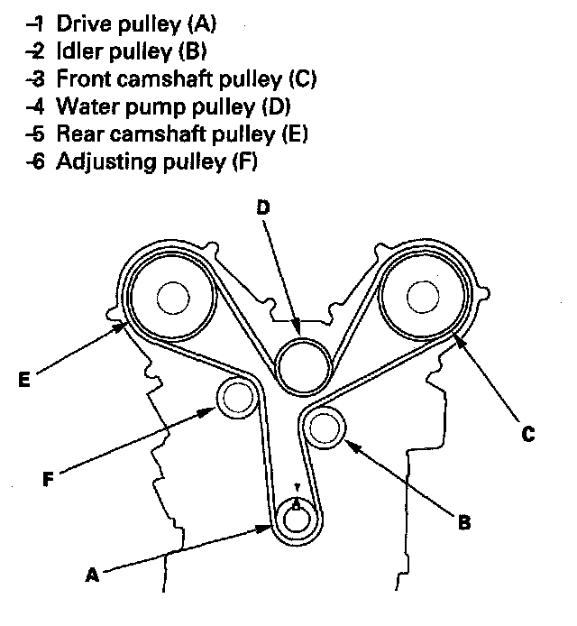 Timing Belt ReplacementNOTE: The following procedure is for the installation of a new timing belt. If you are installing a used belt, refer to the timing belt installation procedure.