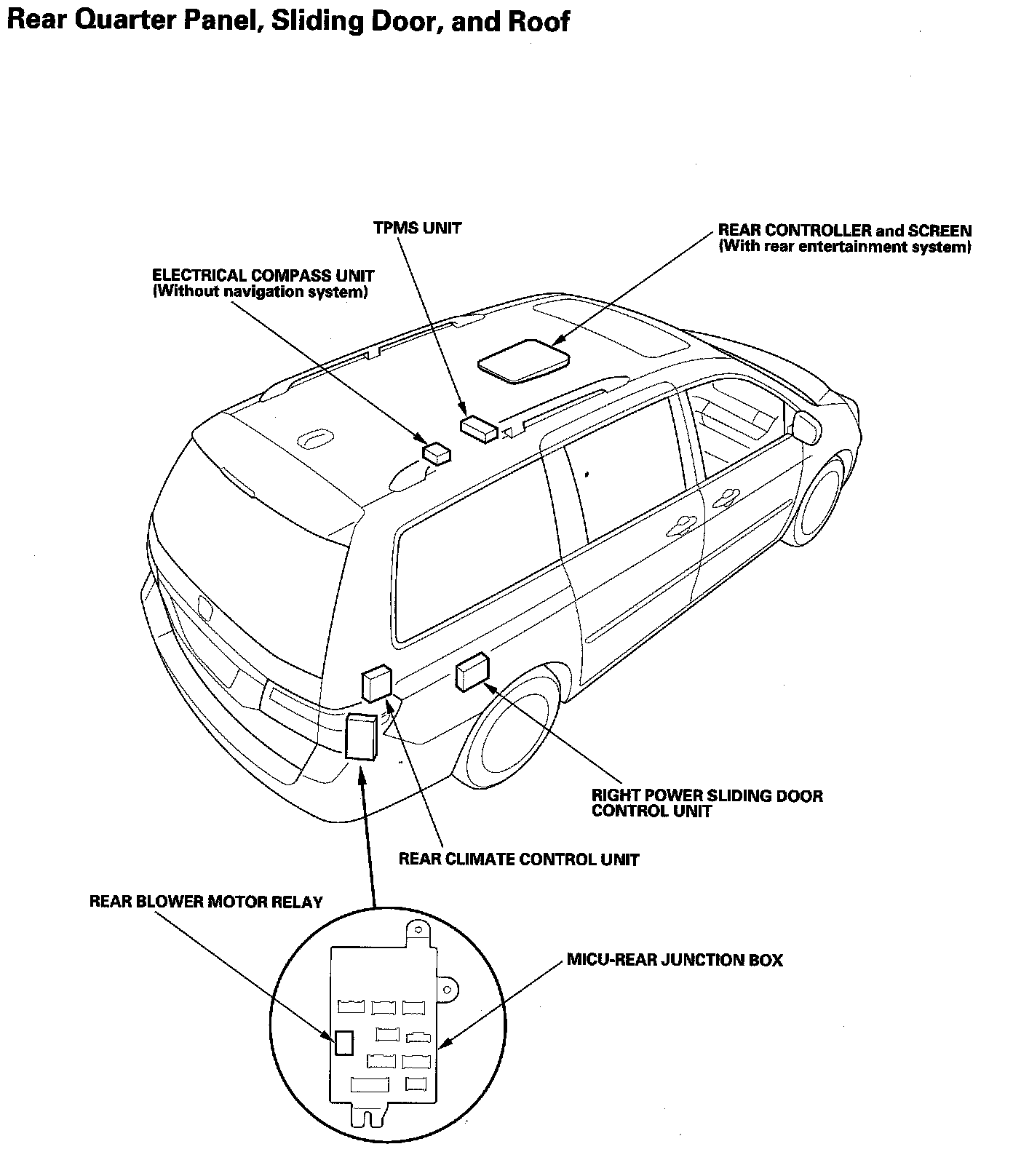 Relay And Control Unit Locations Rear Quarter Panel And Sliding Door, And Roof: