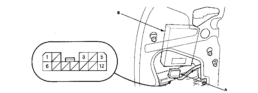 4. Disconnect the 12P connector (A) from the AC inverter unit (B).