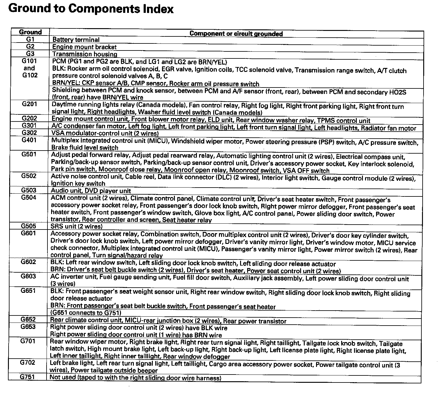 Ground To Components Index: