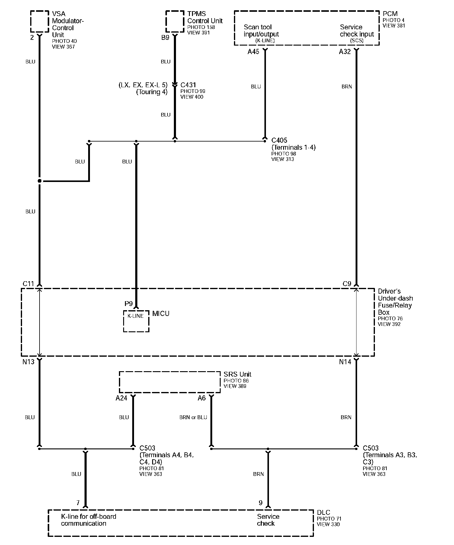 Connector Views: Connector terminal views (references to VIEWS) referred to within these diagrams can be found at Connector Views by View Number. Connector Views By View Number