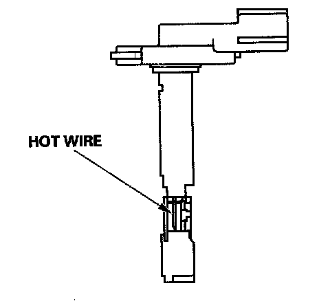 The mass air flow (MAF) sensor contains a hot wire. It is located in the intake air passage. The resistance of the hot wire changes due to intake air flow. The control circuit in the MAF sensor controls the current to keep the hot wire at a set temperature. The current is converted to voltage in the control circuit, then output to the PCM.