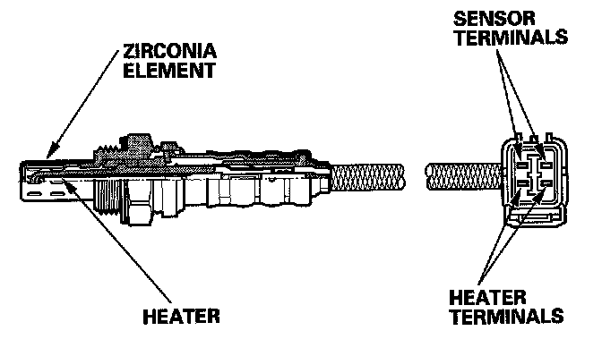 The secondary HO2S detects the oxygen content in the exhaust gas downstream of the warm up three way catalytic converter (WU-TWC), and sends signals to the PCM. To stabilize its output, the sensor has an internal heater. The PCM compares the HO2S output with the A/F sensor output to determine catalyst efficiency. The secondary HO2S is located on the WU-TWC.