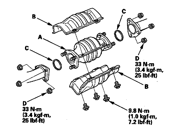 Install the parts in the reverse order of removal with new gaskets (C) and new self-locking nuts (D).