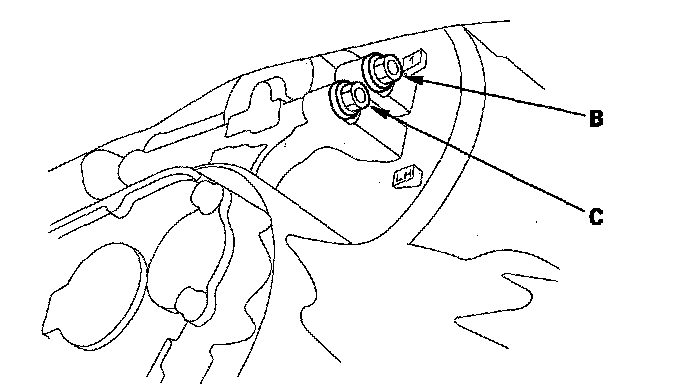 15. Measure 1st clutch pressure at the 1st clutch pressure inspection port (B) and the 1st-hold clutch pressure at the 1st-hold clutch pressure inspection port (C) while holding the engine speed at 2,000 rpm.