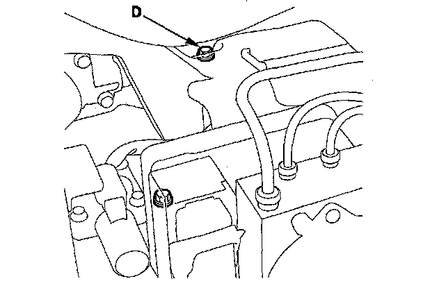 16. Shift to the 2 position, and measure the 2nd clutch pressure at the 2nd clutch pressure inspection port (D) while holding the engine speed at 2,000 rpm.