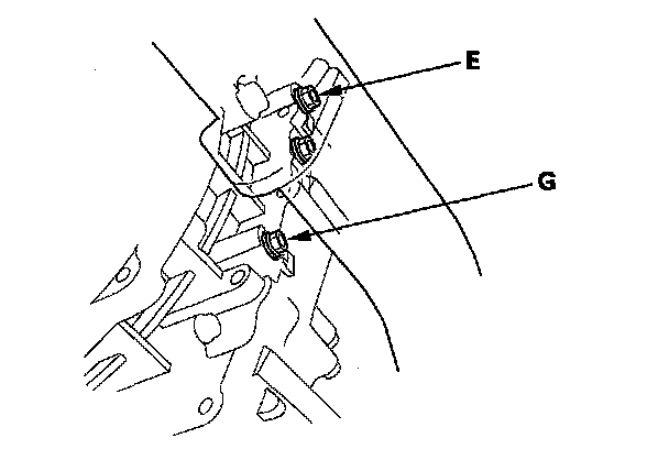 19. Connect the oil pressure gauge to the 3rd clutch pressure inspection port (E) and the 5th clutch pressure inspection port (G).