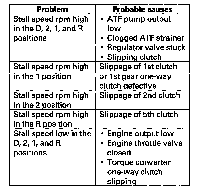 ^ Stall speed tests should be the same in the D, 2, 1, and R positions.