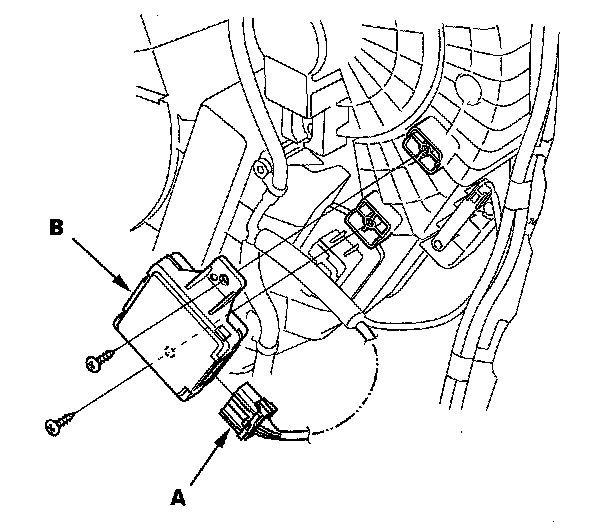 2. Disconnect the connector (A) from the rear climate control unit (B), then remove the self-tapping screws and the rear climate control unit.
