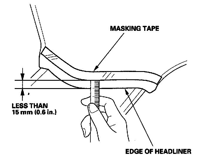 To prevent the side curtain airbag from deploying and damaging the pillar trim, the overlap between the headliner and pillar trim must be less then 15 mm (0.6 in.). To check the overlap, do this: