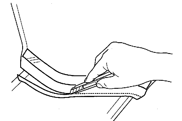 4. Carefully trim the headliner with a utility knife, reducing the overlap to less than 15 mm (0.6 in.).