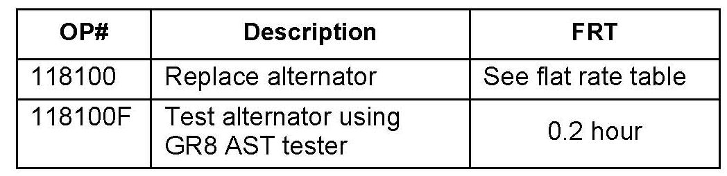 ^ The alternator claim will be returned to the dealership unpaid with an error code if the tester printout does not state REPLACE ALTERNATOR.