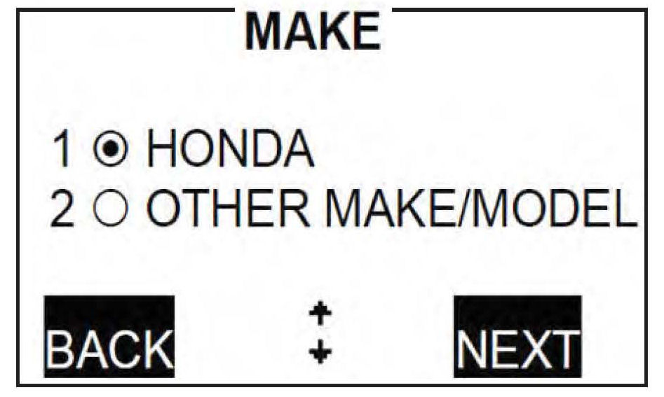 10. Select Honda for the vehicle being tested, and press NEXT to continue.