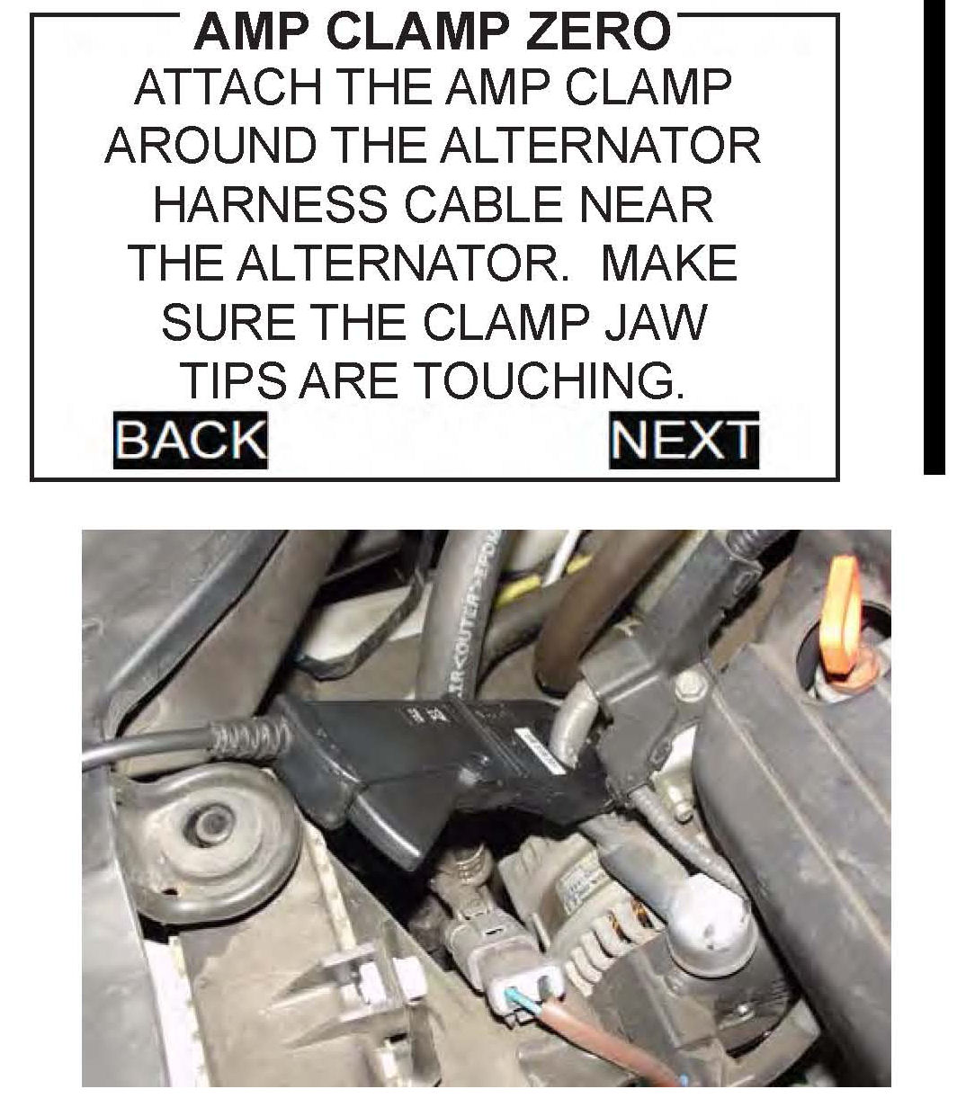 14. Zero the amp clamp following the on-screen instructions, making sure the clamp jaws are completely closed during the procedure.