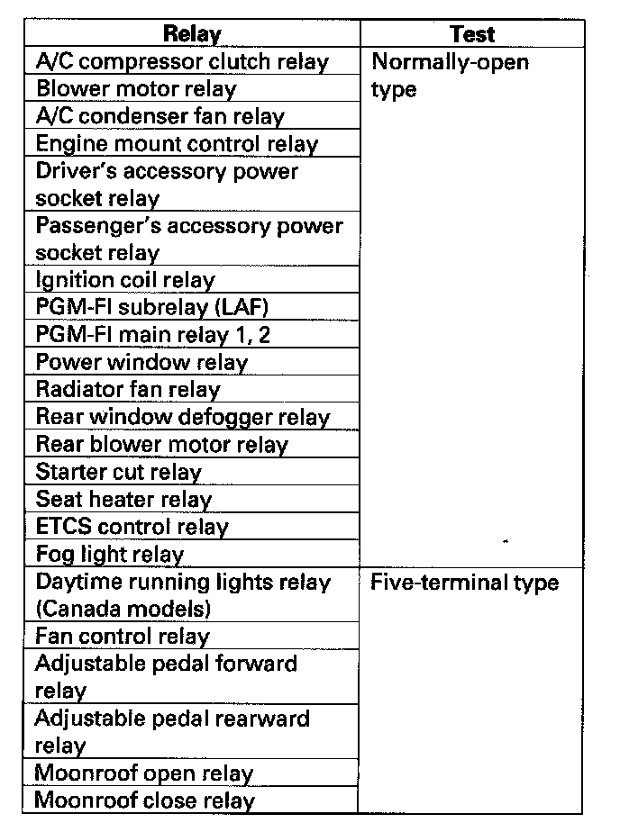 Power Relay TestUse this chart to identify the type of relay, then do the test listed for it.