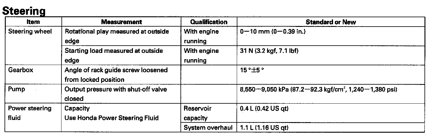 Steering: Specifications