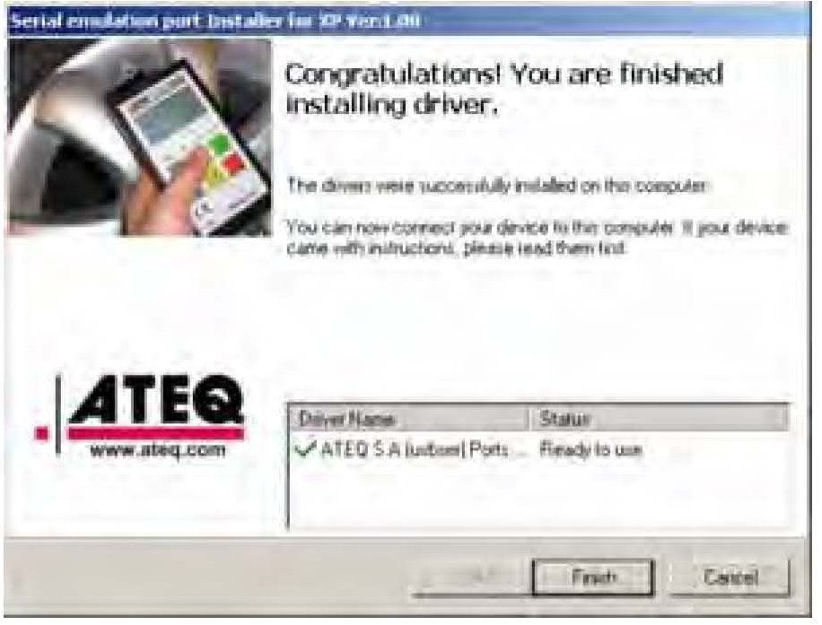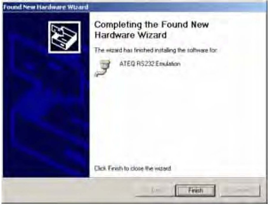 13. After a few seconds, the serial emulation port driver installer prompts you when it is finished. Select Finish.