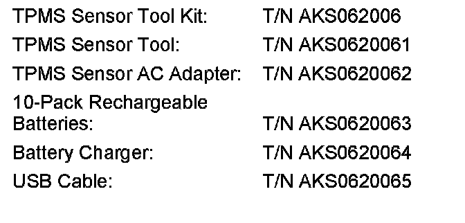 ^ The AC adapter does not charge the batteries in the TPMS sensor tool.