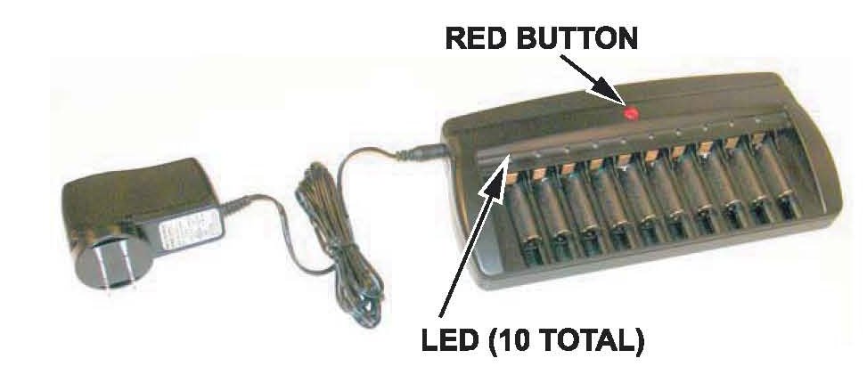 ^ If you press the red button while the batteries are charging, the battery discharge mode begins. Press the red button again within 30 seconds, and the charger switches back to its quick charge mode.