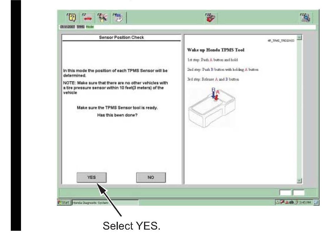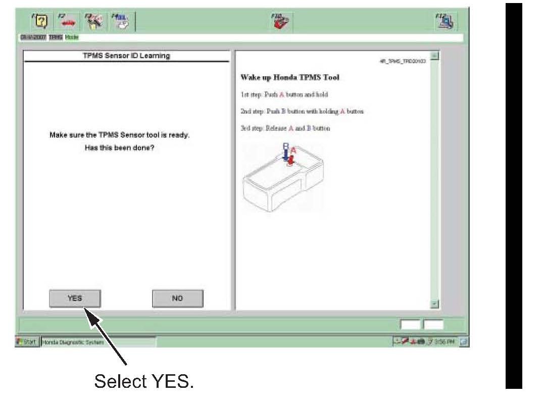 Once the TPMS sensor tool is turned on, select the YES button.