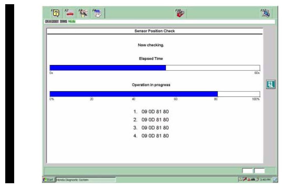 12. Wait about 5 seconds, and the Sensor Position Check screen changes to an operation progress bar.