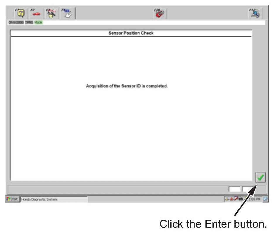 15. The TPMS sensor ID learning changes to the following screen once the procedure is complete. Select the Enter button.