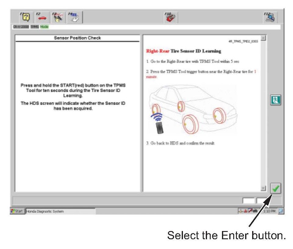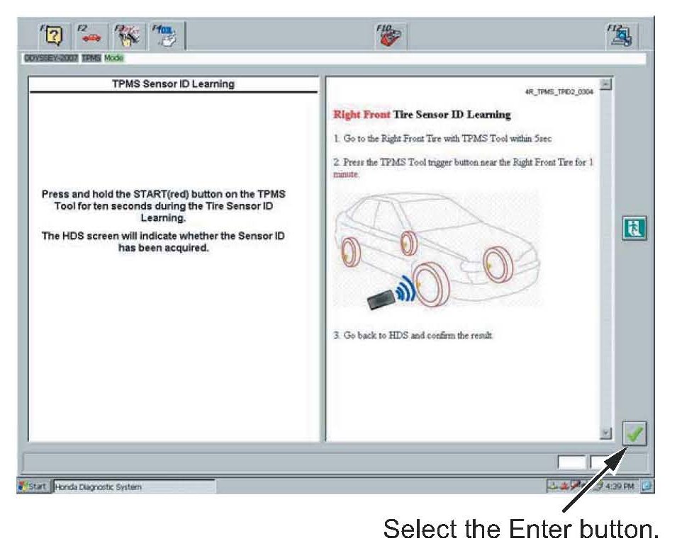9. In the TPMS Sensor ID Learning screen, select the Enter button.