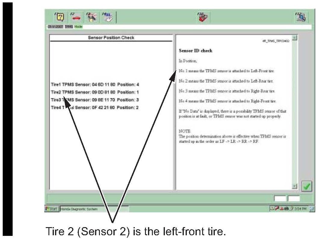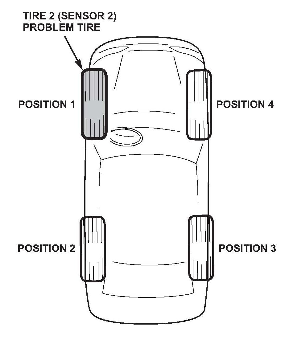 However, the tire number is not the tire position. To diagnose or repair the vehicle, do the sensor position check to find the location of the problem tire (or sensor) on the vehicle.