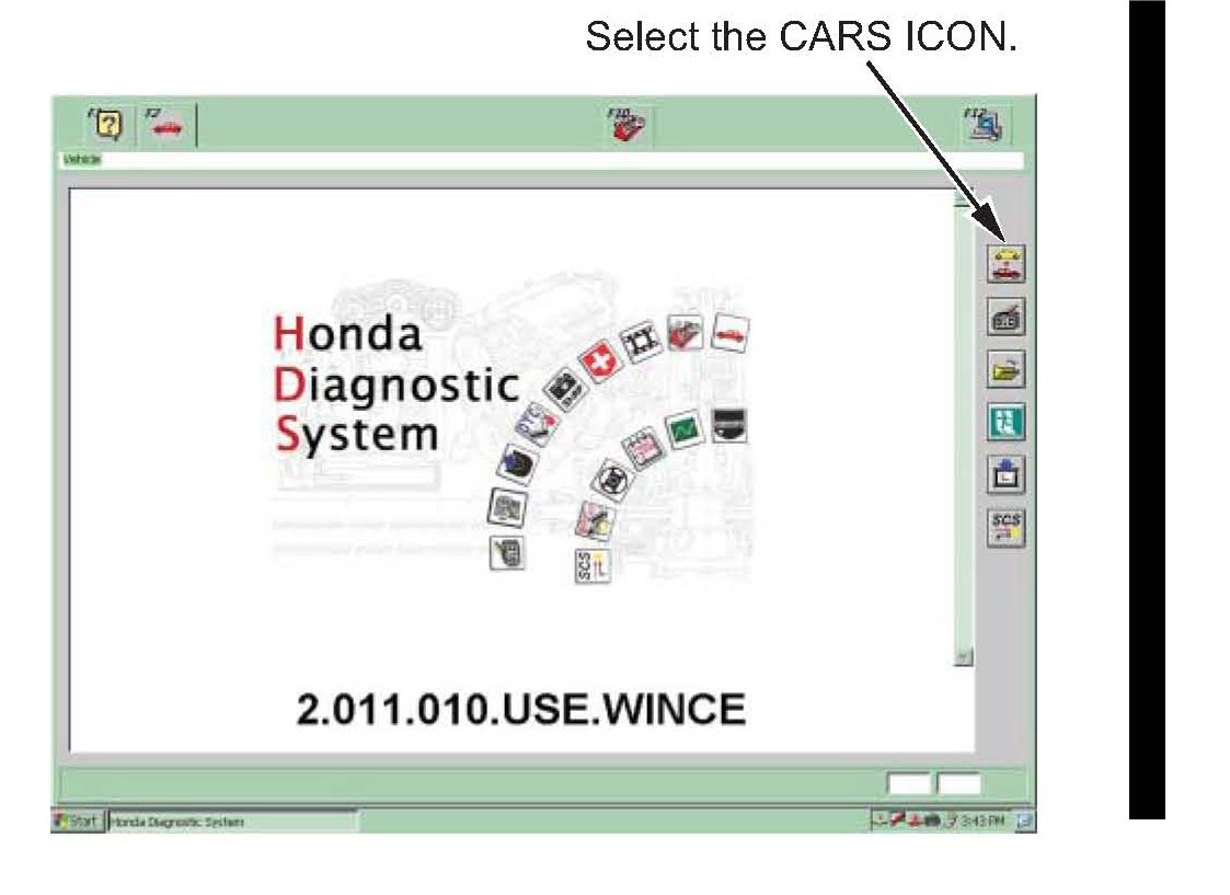 4. On the HDS version screen, select the cars icon.
