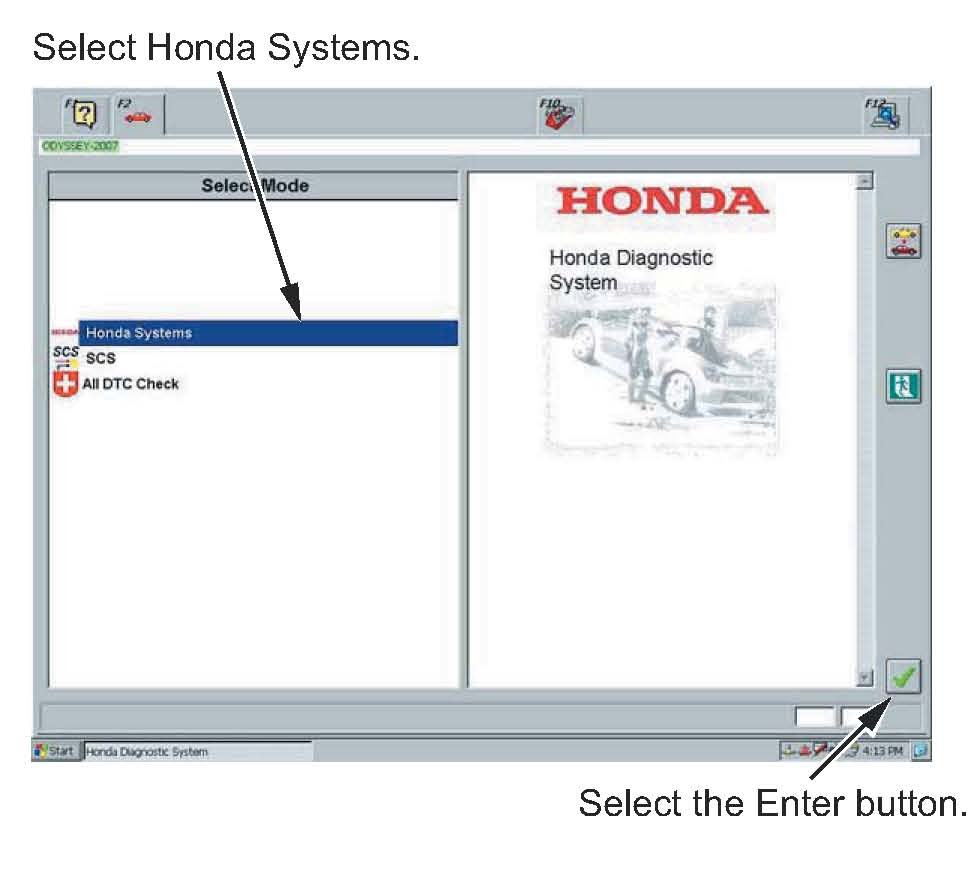 6. In the Select Mode menu, select Honda Systems, then select the Enter button.
