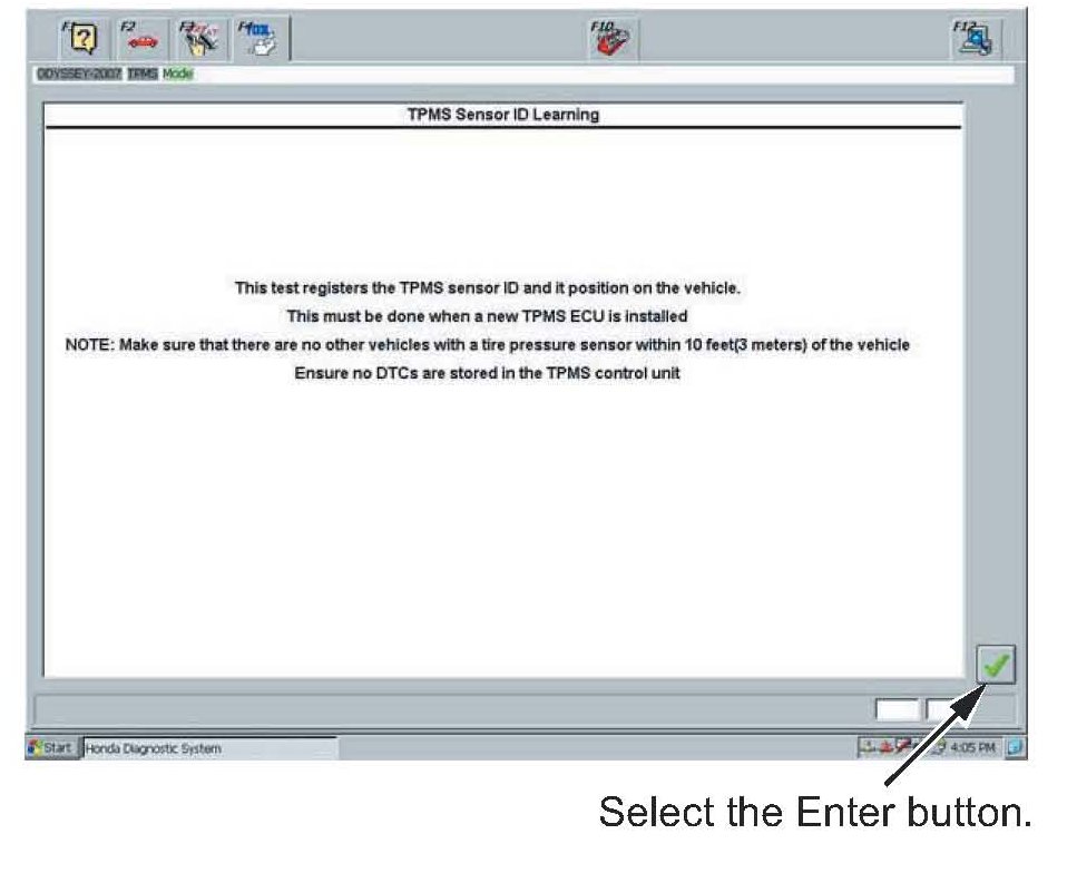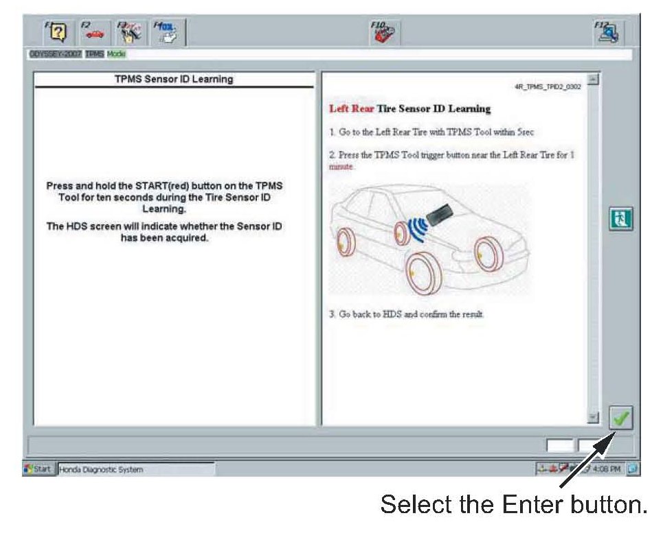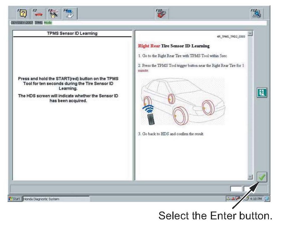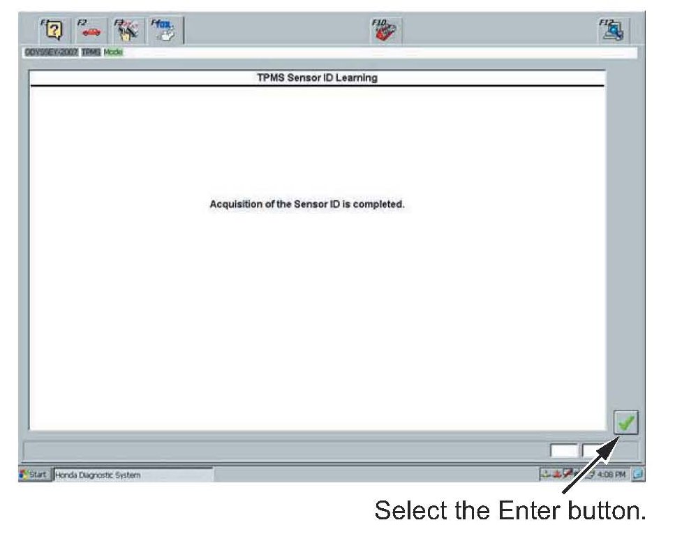 22. The sensor ID learning procedure is complete. Select the Enter button to continue to register the TPMS sensor IDs in the TPMS unit.