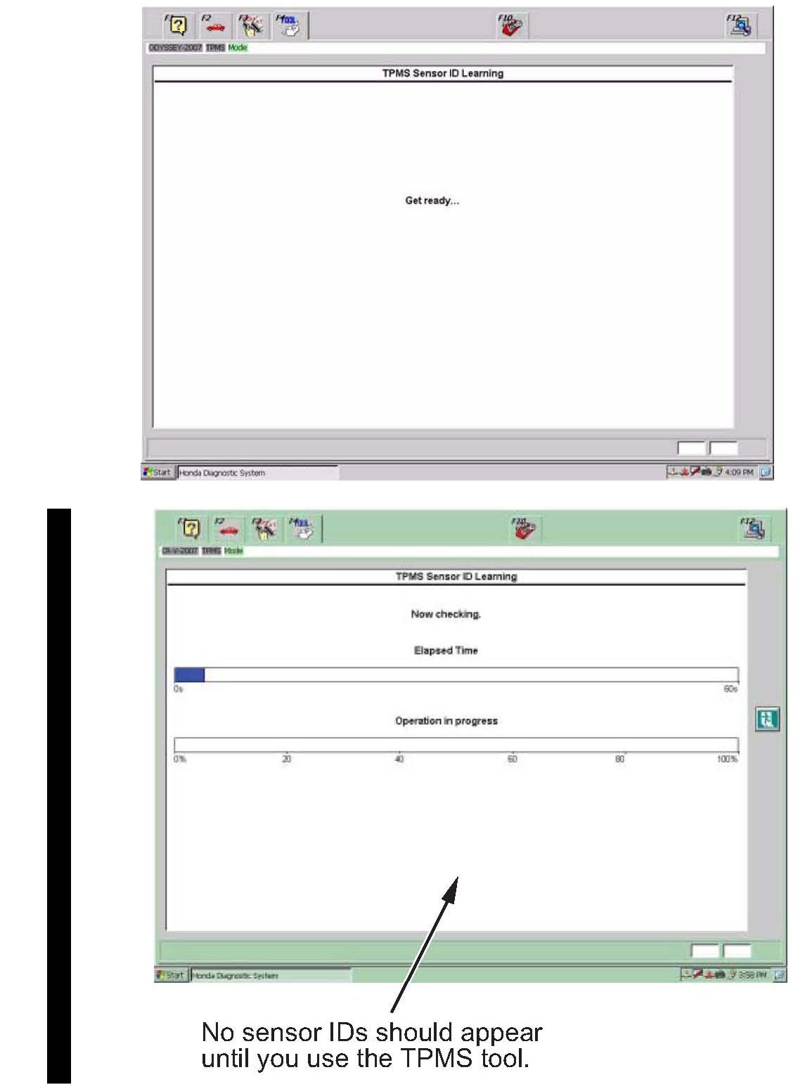 12. Wait about 5 seconds, and the TPMS Sensor ID Learning screen should change to an operation progress bar.