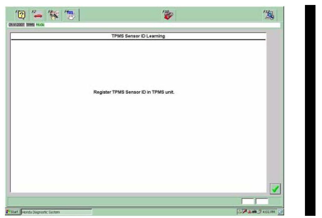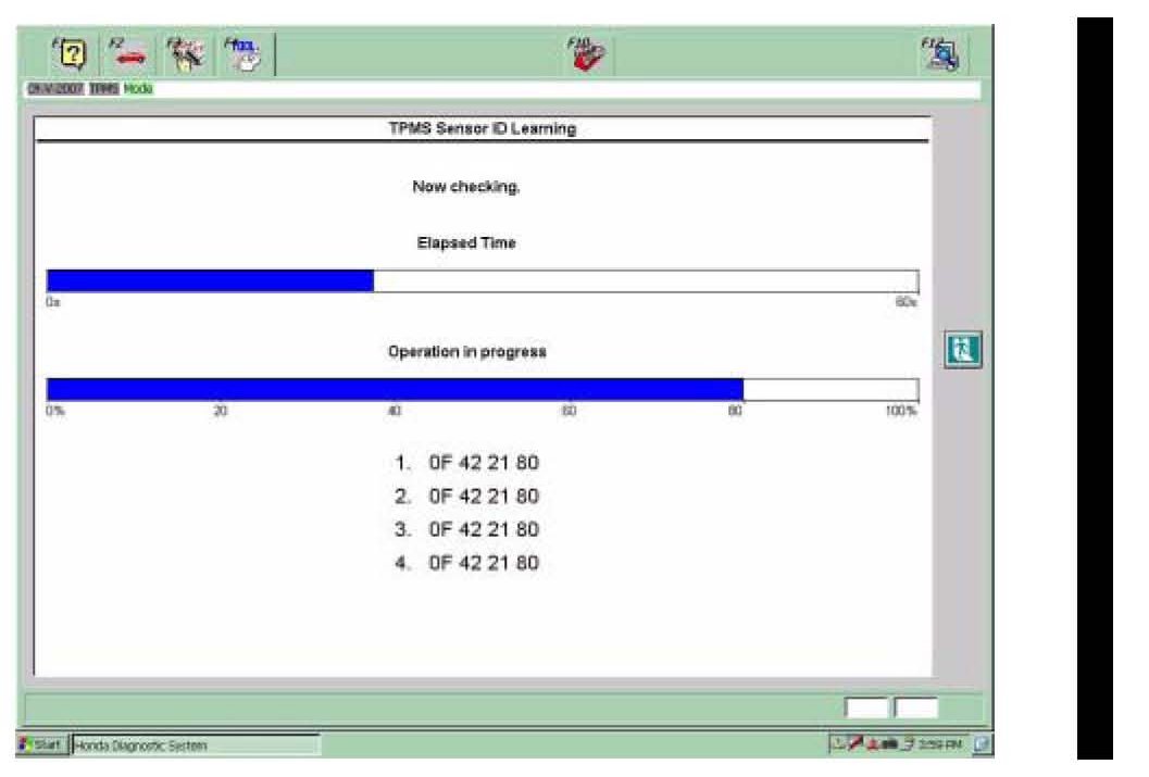 14. Watch for the TPMS sensor IDs to appear on the HDS screen. The TPMS control unit must read the sensor ID five times to complete the learning procedure.
