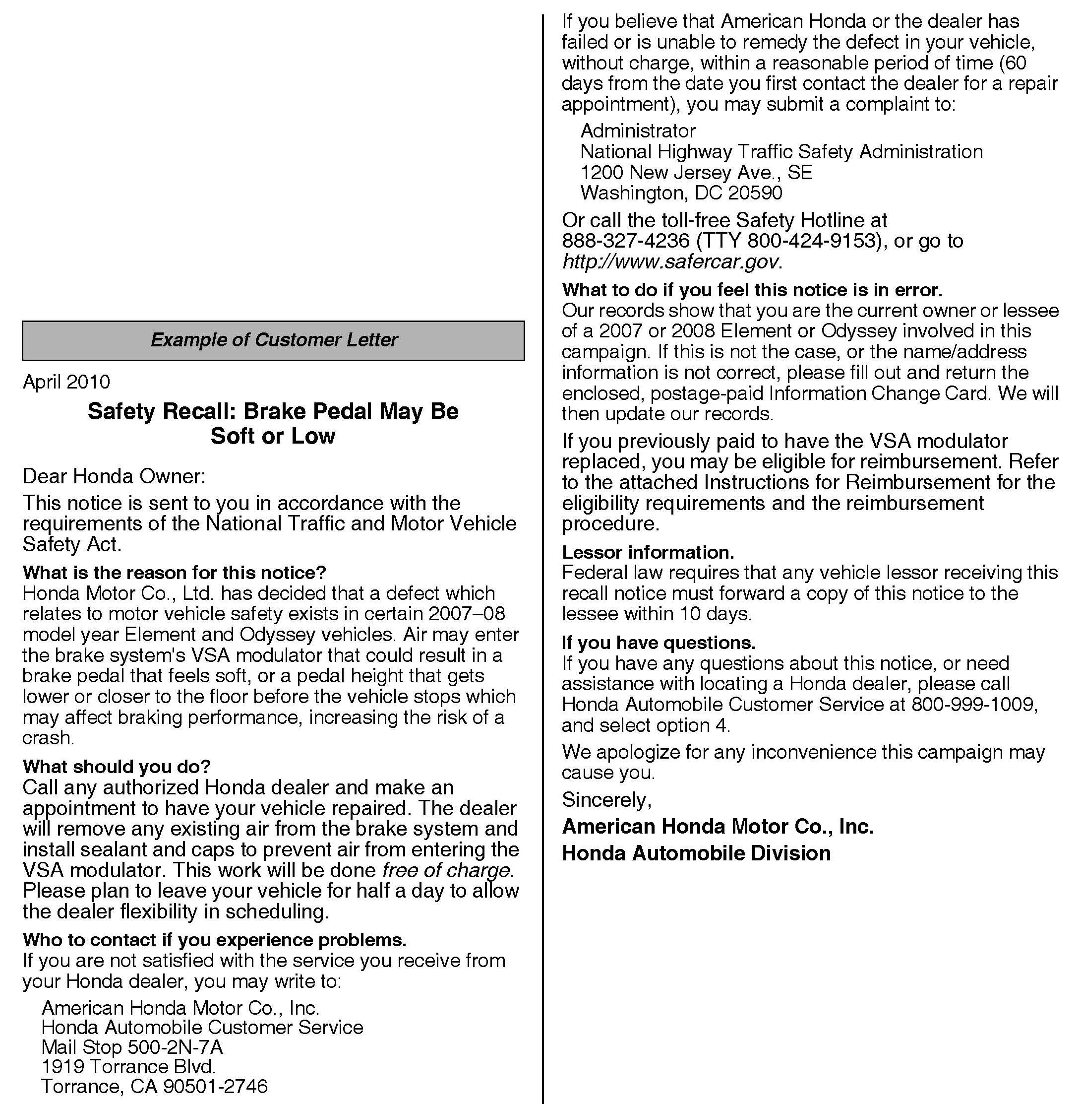 Owners of affected vehicles will receive a notification of this campaign. An example of the customer notification is at the end of this service bulletin.
