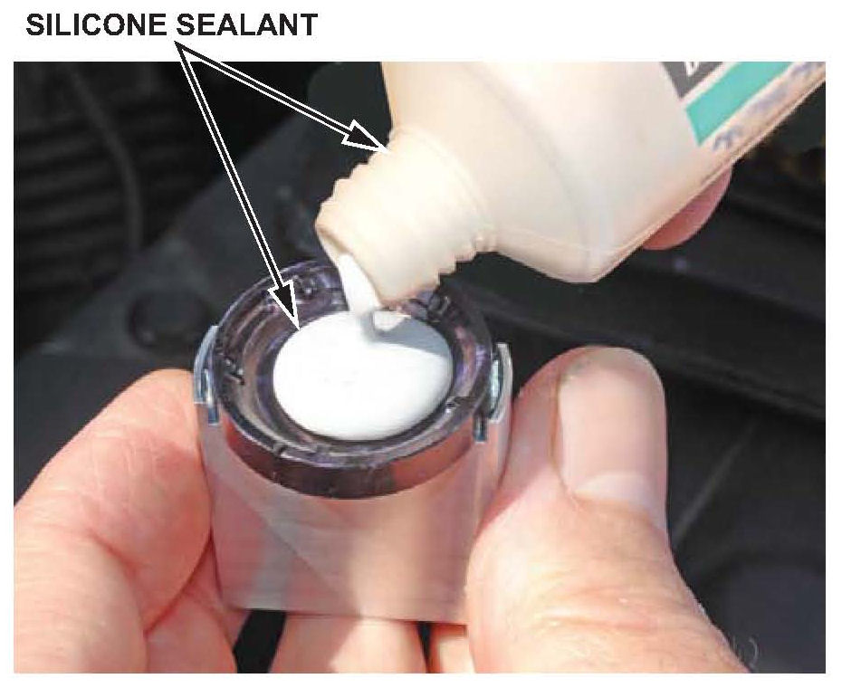 Allow the silicone sealant to cure for 15 minutes before driving the vehicle. Do not touch the caps when the sealant is curing.