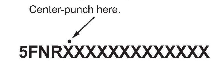 19. Center-punch a completion mark above the fifth character of the engine compartment VIN: