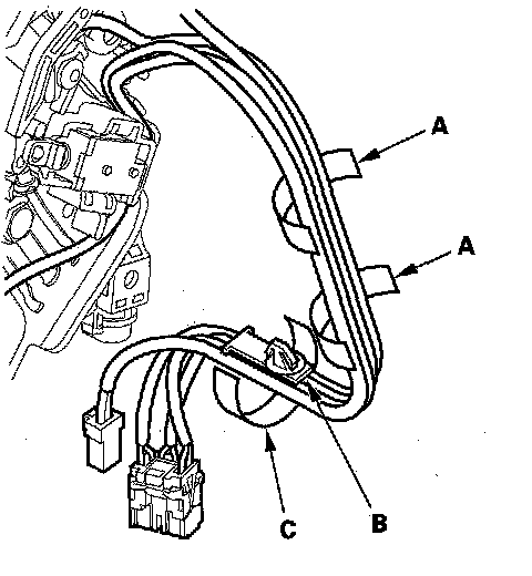 8. Tie the harnesses together into bundles with new tape (A) in two places.