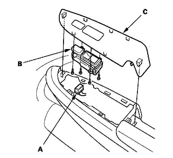 3. Remove the four mounting screws, then remove the power window switch from the switch panel (C).
