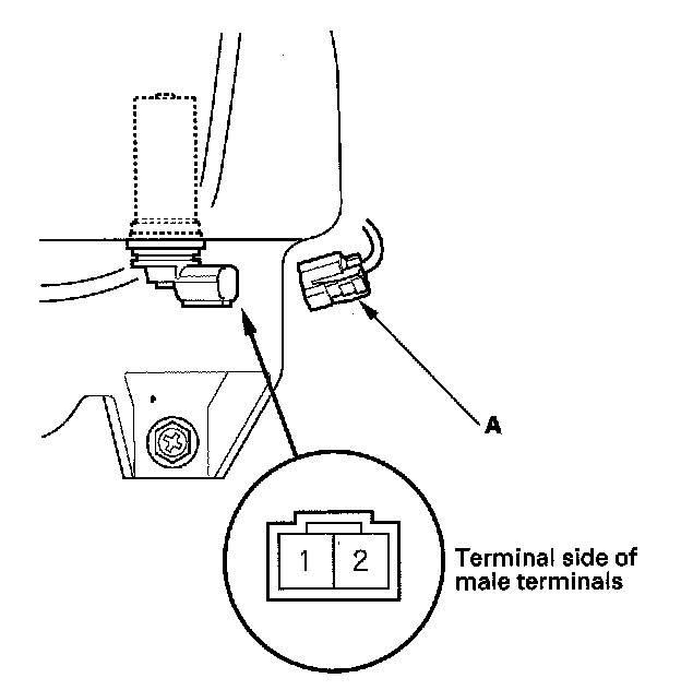 2. Disconnect the 2P connector (A) from the washer fluid level switch.