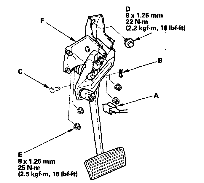 4. Remove the brake pedal with bracket (F).