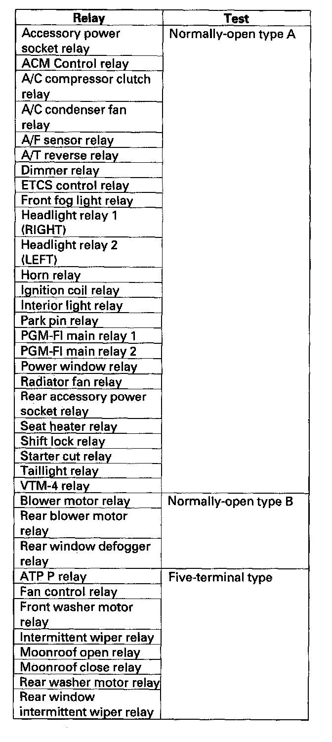 Power Relay TestUse this chart to identify the type of reJay, then do the test listed for it.