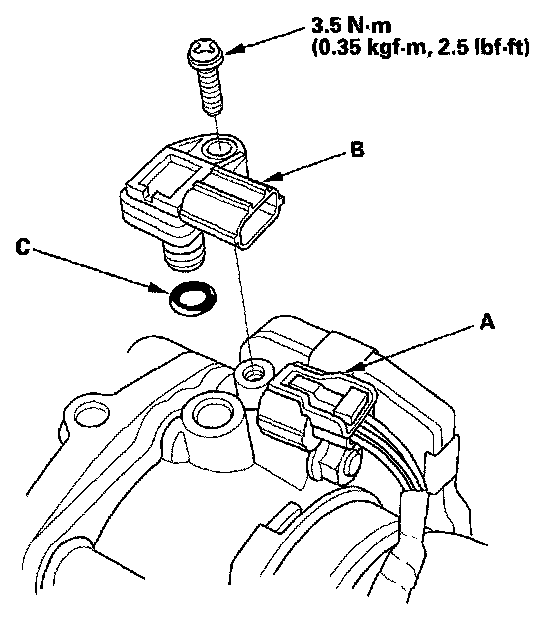 4. Install the parts in the reverse order of removal with a new O-ring (C).
