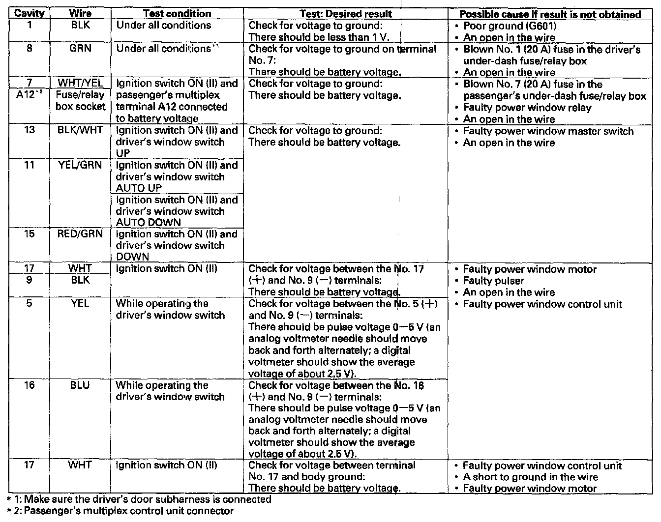 Power Window Control Unit Input Test1. Remove the driver's door panel, but leave the driver's door subharness connector connected to the driver's door wire harness.