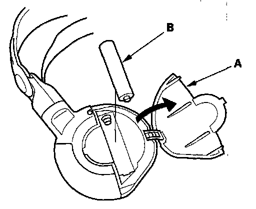 3. Turn the left speaker (A) and confirm that the indicator (B) comes on after the battery is replaced.