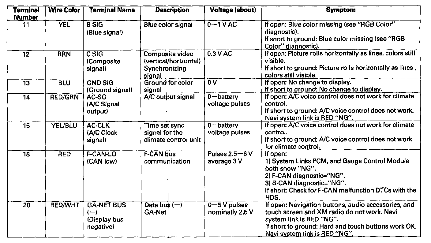 Display Unit Inputs And Outputs For The 20P Connector - Part 2: