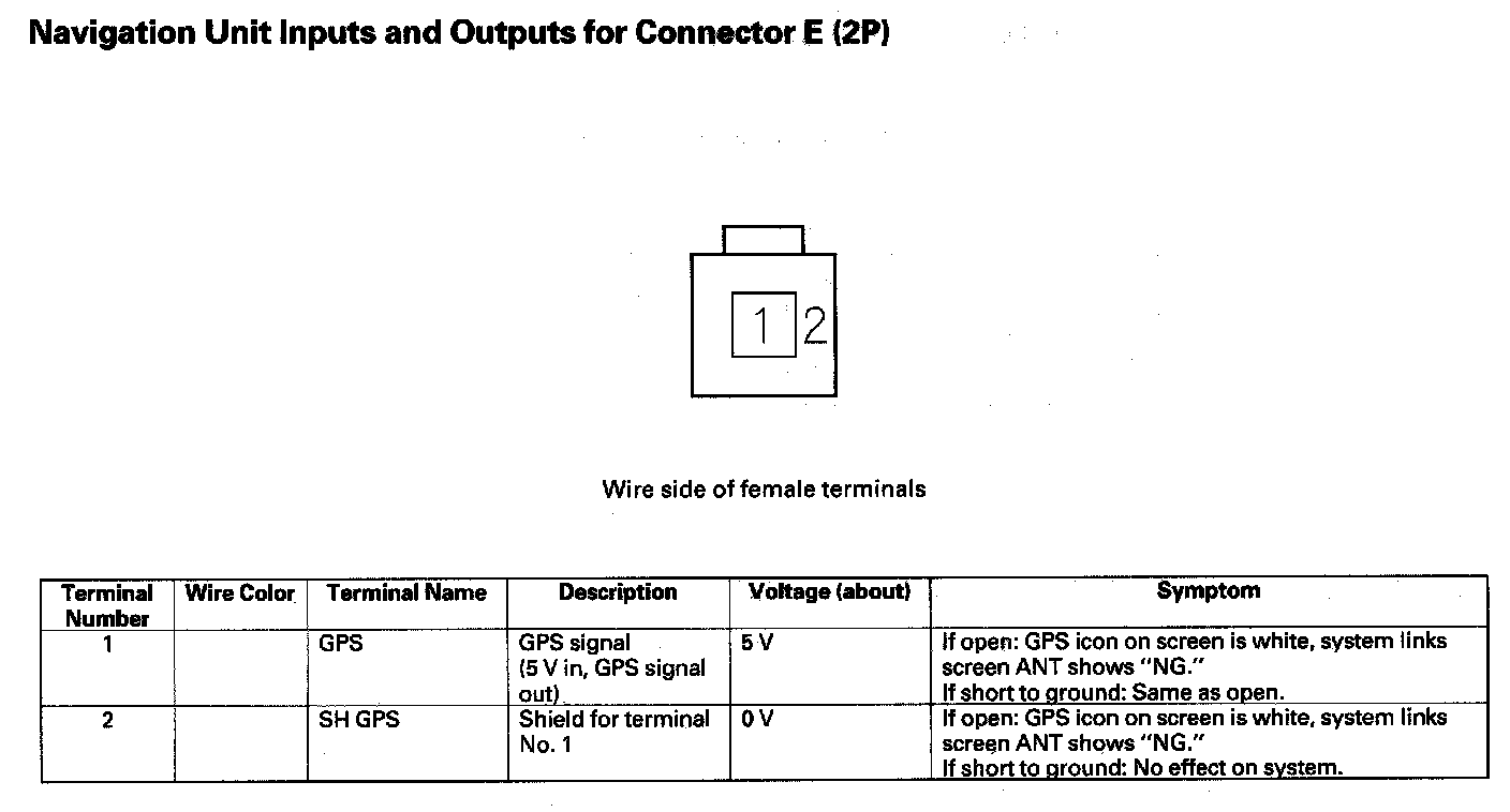 Navigation Unit Inputs And Outputs For Connector E (2P):