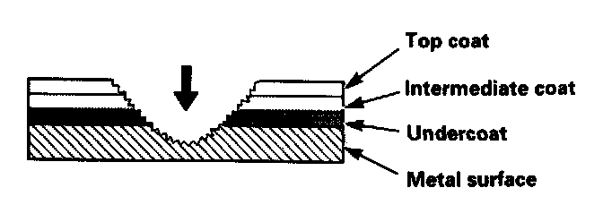 Damage to undercoat, intermediate coat and top coat:
